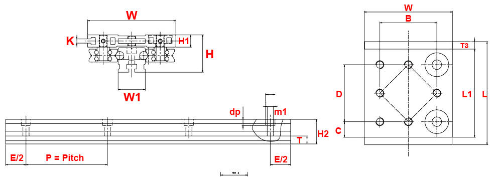 NOTE: Cut-to-length rails have equal spacing (E/2) from both ends to the centerline of the first mounting hole ![]() |